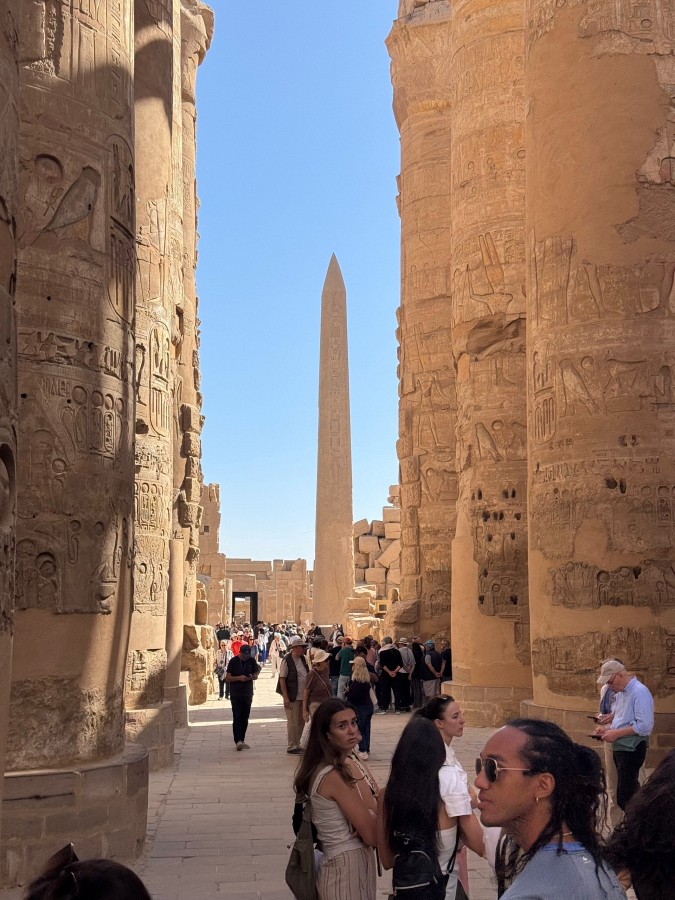 Ездили в Луксор на самолёте из Шарма 27.04.25, вылет в 5.30 утра, летели 45 мин. Самолёт маленький, комфортный, чистый, выдавали воду, в аэропорту досконально проверяют, воду не отбирают. Рассвет встретили в Луксоре, в храм Хатшепсуд приехали первые, других групп ещё не было. На всех объектах времени для осмотра достаточно. В гробницах очень много людей, там душно, но очень интересно. Прогулка по Нилу до острова бананового - прекрасна! Экскурсия понравилась. Всем советуем! Огорчил только поздний вылет , который потом ещё перенесли на час, вылетели в 21.50, устали ждать. 2 пожелания: 1) гиду в Луксоре побольше давать исторической информации, чтобы хоть в гробницах "считывать" рисунки на стенах, картуши и т.д 2) если такой поздний вылет, продумать продолжение экскурсии до вечера, возможно, посмотреть подсветку лксорского храма. Вся наша группа готова была доплатить даже. В остальном, все чётко! Микроавтобус был хороший, чистый. Узнали Египет изнутри.
